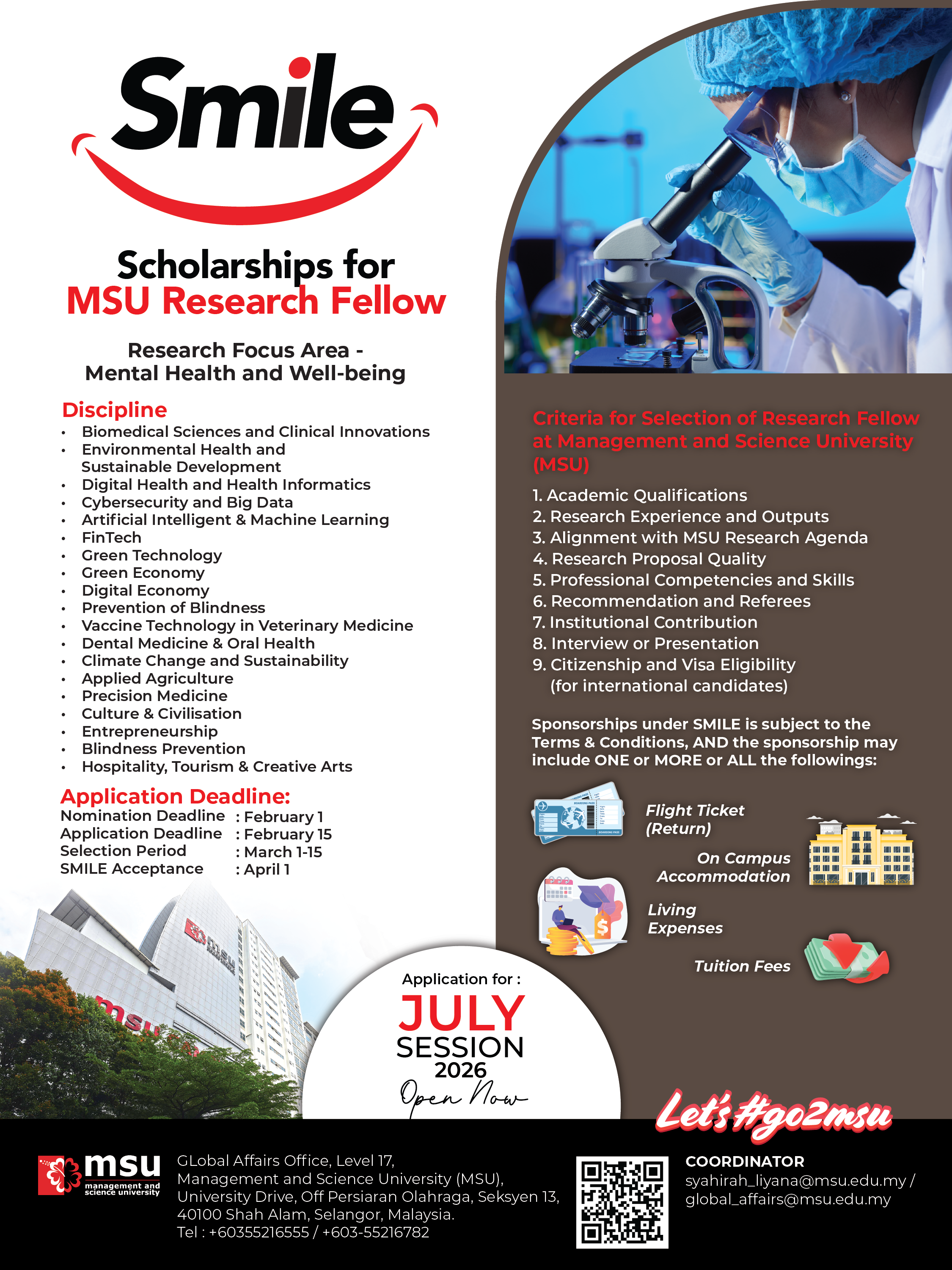 Call for Applications: Research Fellow Position at Management & Science University(Malaysia)